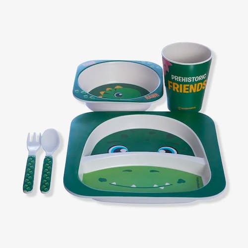 O produto é importado, feito em fibra de bambu e melamina, possui detalhes incríveis que vão fazer você se apaixonar! Para te acompanhar no café, possui um bowl de 350ml para você encher de cereais e frutinhas! Para o almoço possui um prato, talheres e um copo de 250ml que garante aquele suquinho geladinho! Além de ser livre de BPA, esse é o kit perfeito para tornar a hora de comer do seu filho mais divertida! Não importa se é no almoço, ou janta, esse kit acompanha seu ser humaninho em todas as aventuras!