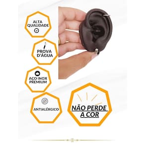 Kit brinco argola pressão prata piercing cartilagem fake aço inox antialérgico - 3 peças Kit brinco argola pressão prata piercing cartilagem fake aço inox antialérgico - 3 peças Kit brinco na cor aço inox prata é uma ótima opção para presentear um amigo ou namorado. Esse kit é bem completo, pois contém 1 peça do brinco de cartilagem e 2 peças 1 par do brinco pressão argola. Não precisa ter furo para usar - preço do kit com 3 peças - excelente qualidade ============================================== Fotos reais do produto na galeria Detalhes técnicos: Marca: visujóias Modelo: brinco pressão kit Diâmetro: 8mm Espessura do brinco: 4mm Incluso: 3 peças 2 peças 1 par de argola pressão e 1 peça brinco cartilagem . Material: aço inoxidável. Código do produto sku : 3093-2-prata-3144-2-1und : a tem prazo de 6 meses. Todas as peças possuem tratamento antialérgico. ============================================== P:minha compra é segura R:toda compra que é feita aqui está em ambiente seguro, isso significa que se caso ocorra algum imprevisto faremos o estorno de seu pagamento. R: sim. P: precisa de furo para usar O brinco fica caindo R: não não precisa de furo para usar. Colocando o brinco da maneira correta, não fica caindo, pelo contrario, fica bem fixo. Temos um vídeo na galeria explicando como usar. P: produto é a prova d'água R: sim, pode usar em piscinas e praias que não escurece. P: tem R: sim, todos os nossos produtos tem de 6 meses, contra defeitos de fabricação. Todas as informações de cuidados são enviados junto com o produto. P: posta em quanto tempo P: posso trocar se não servir R: sim, enviamos nosso contato junto com o produto para orientação sobre troca. P: posso devolver se não gostar R: sim, caso não goste do produto é só entrar em contato conosco que iremos orientá-lo como efetuar a devolução. Dúvidas Pergunte à vontade, estamos aqui. ficaremos felizes em responder rapidamente. Aguardamos sua compra e estamos ao seu dispor : Marca: Não Informado Ean: 7732647216157