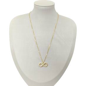 - Pingente e brincos em formato infinito cravejados com zircônias brilhantes
