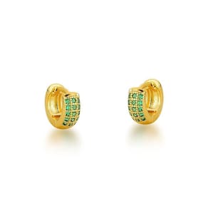 Kit Brincos Argolas cravejadas com Zirconias Banhadas a Ouro 18k Verde -