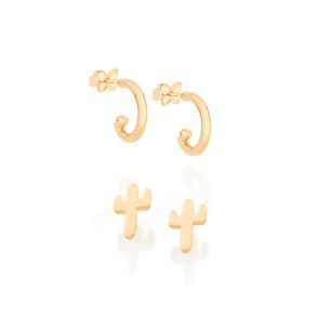 Kit brinco formado por um par no formato de cacto, e um par de argolinhas,
