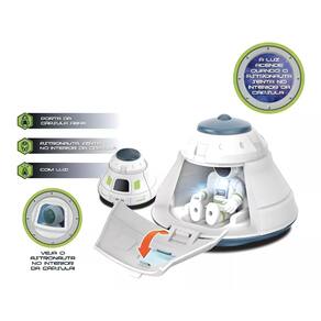 Entre na nave e no foguete, acenda a luz e explore sua imaginação!CONTÉM: - 01 Nave de brinquedo - 01 Foguete de brinquedo - 02 Action Figure Astronauta.OBS: A nave possui luz!- Material: ABS e PVC- Tamanho dos Bonecos: 8cm- Dimensões da Capsula: 12cm (diâmetro) e 9cm (alt) - Tamanho aproximado do foguete : 20,5cm de largura x 24,5cm de comprimento x 9,5cm de altura- Utiliza 2 Baterias LR44 (baterias inclusas).