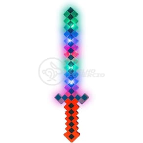 Kit Brinquedo Espada Pixel Minecraft 58cm C/Som Luz+3 Pilhas