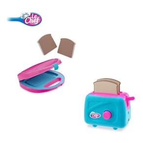 Para suas brincadeiras ficarem ainda mais divertidas, o kit cozinha Le Chef é perfeito para você. A torradeira e sanduicheira são estilosas e divertidas, com pãezinhos de acessórios, para deixar a brincadeira ainda mais legal!