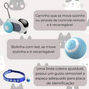 O kit de brinquedos para gato são produtos que promete horas de diversão e estímulo para seu felino. Com um design inovador, estes brinquedos se movimenta sozinhos, imitando o comportamento de uma presa, o que atrai a atenção dos gatos e os incentiva a brincar e se exercitar. Inclui também uma linda coleira com guizo removível e espaço adequado