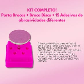 Kit Broca Disco + 15 Refil Lixa 80/120/180 + Suporte Unhas