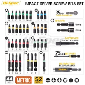 RÁPIDO DIY Dirija em superfícies duras e gire porcas apertadas com o conjunto de bits de chave de impacto Hi Spec. HIGH TORQUE Supera as brocas Cr V padrão quando o torque máximo é fornecido na fixação hard stop. SET FOR LIFE Obtenha bits essenciais, incluindo Torx, Pozidriv, Hex Allen com drivers de porca HVAC e muito mais. PARA IMPACTO As pontas usinadas reduzem a decapagem e o ressalto. Uma zona de torção distribui tensão excessiva. TEMPERADO Aço resistente a choques S2 e revestimentos protetores de fosfato melhoram a ductilidade e a dureza Marca: Não Informado