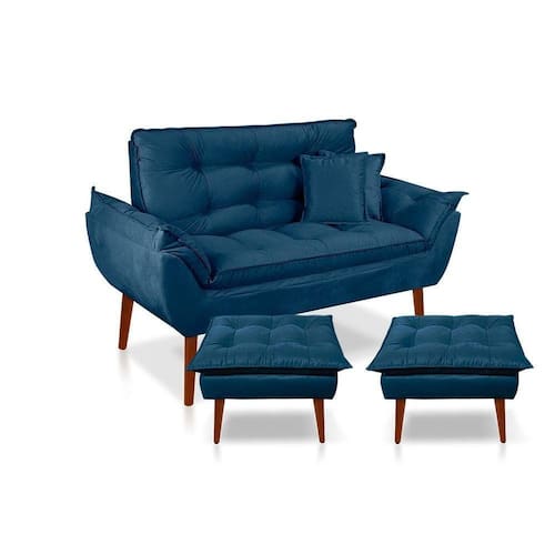 Kit C/ 01 Namoradeira Opala + 02 Puffs Opala + 02 Almofadas Suede Azul Marinho -