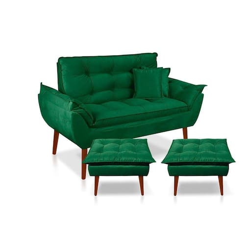 Kit C/ 01 Namoradeira Opala + 02 Puffs Opala + 02 Almofadas Suede Verde -