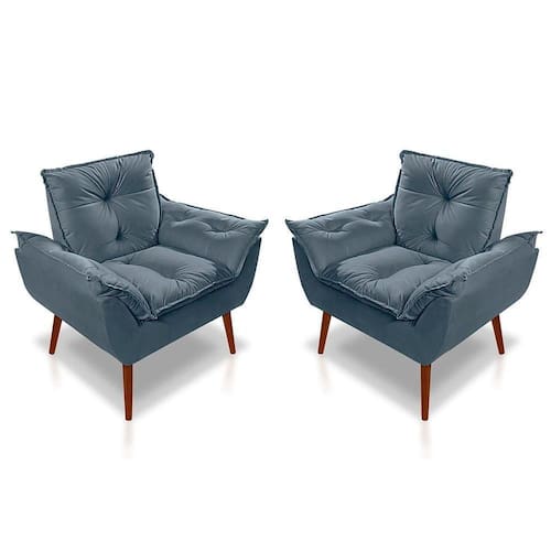 Kit C/ 02 Poltronas Opala Luxo Suede Azul Turquesa