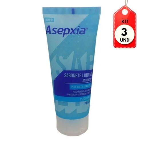 Kit C/03 Asepxia Sabonete Esfoliante Facial 100ml DESCRIÇÃO: Nossa pele, ao longo do dia, é bombardeado por inúmeras impurezas, seja da população, ar condicionado, ou simplesmente a poeira dos móveis, fazendo com que ela fique suja, a esfoliação é exatamente para limpar profundamente de dentro para fora, para realizar essa tarefa, nenhum produto é melhor que assepxia esfoliante profundo, pois ele penetra fundo na pele, deixando-a macia e saudável.AÇÃO/ATIVOS: Ideal para os dias corridos, pois ele além de não ressecar a pele, ela suaviza as imperfeições, retirando todas as células mortas e desobstruindo os poros, para que eles possam respirar tranquilamente.MODO DE USAR: Fazer movimentos circulares no rosto suavemente, para retirar, enxágue com água abundante.ESTE ANÚNCIO CONTÉM: 03 Asépxia Sabonete Esfoliante Facial 100mlKit C/03 Asepxia Sabonete Esfoliante Facial 100ml