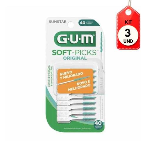 Kit C/03 Gum Soft Picks Palito Interdental De Borracha C/40 DESCRIÇÃO: Gum Soft Picks é fácil e muito cômodo de usar, é uma excelente alternativa prática para a limpeza interdental.AÇÃO/ATIVOS: Gum Soft Picks elimina de forma segura a placa e resíduos alimentares. Além de massagear e estimular as gengivas.MODO DE USAR: Mover o palito de dentro para fora para limpar entre os dentes e massagear a gengiva. Não forçar em espaços muitos pequenos.ESTE ANÚNCIO CONTÉM: 03 Gum Soft Picks Palito Interdental De Borracha C/40Kit C/03 Gum Soft Picks Palito Interdental de Borracha C/40