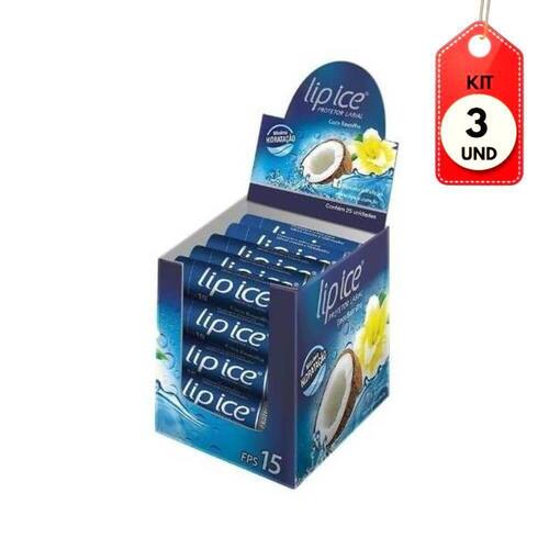 Kit C/03 Lip Ice Fps15 Protetor Labial Coco Baunilha C/25 DESCRIÇÃO: Com um design único e sofisticado, Lip Ice Cube possui uma inovadora tecnologia ?Lip Perfecting Technology?, que combina 5 poderosos benefícios em 1 único produto deixando os lábios hidratados e saudáveis.AÇÃO/ATIVOS: Pois é o único protetor labial 5 em 1: Hidrata com manteiga de karité que restaura a umidade dos lábios, Regenera com vitaminas A, C e E, Suaviza os lábios deixando-os sedosos e macios, Protege por conter fps 15 e Dá Brilho proporcionando um acabamento perfeito e radiante.MODO DE USAR: Passe o Lip Ice Cube nos lábios várias vezes ao dia, para mantê-los protegidos por mais tempo (uso externo somente).ESTE ANÚNCIO CONTÉM: 03 Lip Ice Fps15 Protetor Labial Coco Baunilha C/25Kit C/03 Lip Ice Fps15 Protetor Labial Coco Baunilha C/25