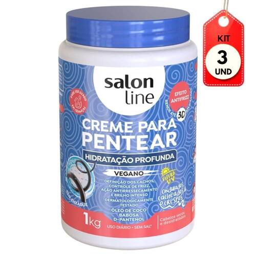 Kit C/03 Salon Line Hidratação Profunda Creme P/ Pentear 1kg DESCRIÇÃO: Hidrata intensamente de dentro para fora resgatando o brilho intenso e o movimento natural como você sempre quis, o creme para pentear salon line hidratação profunda reduz o volume excessivo e mantém os cabelos comportados e alinhados durante todo o dia, enriquecido com óleo de ojon, óleo de buriti e de macadâmia nutrientes que auxiliam em um resultado imediato e satisfatório, pode ser utilizado diariamente e não precisa enxaguar.AÇÃO/ATIVOS: O creme para pentear salon line hidratação profunda foi desenvolvido para facilitar o pentear e nutrir os fios capilares de forma suave e eficaz, proporciona maciez e suavidade repondo todas as vitaminas necessárias para a restauração dos cabelos. MODO DE USAR: Com os cabelos limpos, aplique o creme em toda extensão dos fios até as pontas. Pode ser aplicado em cabelos secos e úmidos, não enxágue, a quantidade a ser aplicada depende do comprimento e volume do cabelo.ESTE ANÚNCIO CONTÉM: 03 Salon Line Hidratação Profunda Creme P/ Pentear 1kgKit C/03 Salon Line HidrataÃÃo Profunda Creme P/ Pentear 1kg