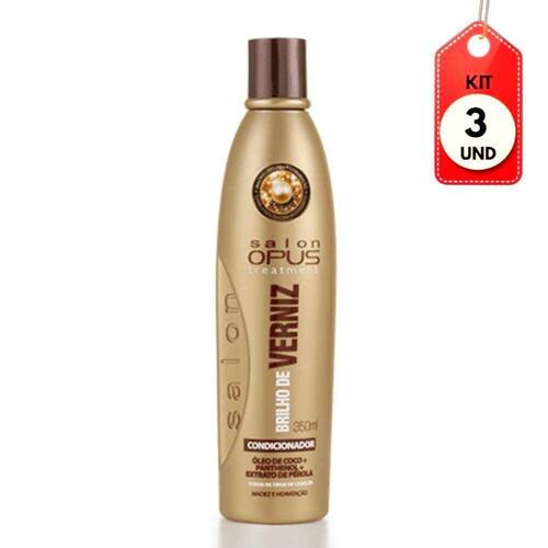 Kit C/03 Salon Opus Brilho De Verniz Condicionador 350ml DESCRIÇÃO: A linha Salon Opus Treatment Brilho de Verniz foi desenvolvida exclusivamente para você que deseja brilho intenso, sem perder o movimento natural.AÇÃO/ATIVOS: Inspirada em ingredientes da natureza, da terra e do mar, alinha os fios, doando ultra brilho, maciez e reduzindo o frizz.MODO DE USAR: Aplique nos cabelos lavados, massageando suavemente. Enxágue.ESTE ANÚNCIO CONTÉM: 03 Salon Opus Brilho De Verniz Condicionador 350mlKit C/03 Salon Opus Brilho de Verniz Condicionador 350ml