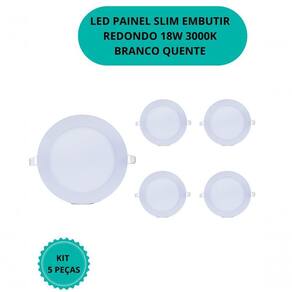 PLAFON LED REDONDO SLIM EMBUTIR 18W 3000K KIT 5