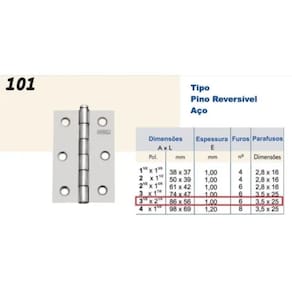 Kit C/06 Cartelas C/03 Dobradiça Merkel 101 Flo 3.1/2 - 18Pc - KIT COM 6 CARTELAS ONDE CADA CARTELA CONTEM 3 DOBRADIÇAS + PARAFUSOS TOTALIZANDO 18 PEÇAS AVULSAS