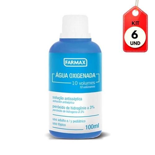 Kit C/06 Farmax água Oxigenada Antisséptica 10vol 100ml DESCRIÇÃO: Farmax Água Oxigenada 10vol. É indicada no tratamento de feridas, remove tecidos mortos, principalmente em locais da ferida de difícil limpeza. Também pode ser empregada na limpeza das gengivas, após remoção de dentes e manipulação odontológica.AÇÃO/ATIVOS: A Água Oxigenada possui um excelente efeito antisséptico oxidante que age contra microorganismos que podem ser nocivos à saúde.MODO DE USAR: Mais informação estão contidas no verso da embalagem.ESTE ANÚNCIO CONTÉM: 06 Farmax Água Oxigenada Antisséptica 10vol 100mlKit C/06 Farmax Ãgua Oxigenada AntissÃptica 10vol 100ml