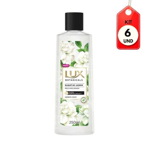 Kit C/06 Lux Buque De Jasmim Sabonete Líquido Suave 250ml DESCRIÇÃO: O sabonete líquido lux botanicals buquê de jasmim apresenta espuma cremosa e delicada fragrância, sem parabeno, com óleos hidraflorais.AÇÃO/ATIVOS: Proporcionando à pele toque macio e irresistivelmente aveludada.MODO DE USAR: Aplique algumas gotas sobre a mão ou esponja e massageie para uma espuma cremosa, espalhe sobre o corpo delicadamente em movimentos circulares, enxágue em seguida.ESTE ANÚNCIO CONTÉM: 06 Lux Buque De Jasmim Sabonete Líquido Suave 250mlKit C/06 Lux Buque de Jasmim Sabonete LÃquido Suave 250ml