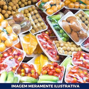 Bandeja leve com indicação uso na panificação (bolachas e salgados diversos) e nos frios (queijos, presuntos, linguiças e salsichas).