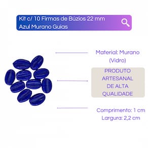 Kit c/ 10 Firmas de Búzios 22 mm Azul Murano Guias