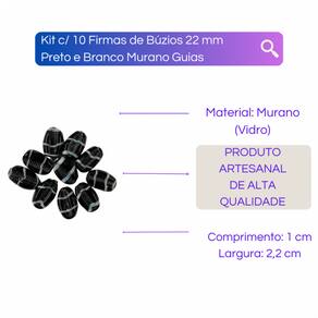 Kit c/10 Firmas Búzios 22 mm Preto e Branco Murano Guias