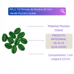 Kit c/10 Firmas Búzios 22 mm Verde Murano Guias