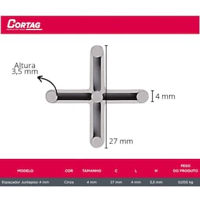 Cor: Cinza. Tamanho: 4 mm. Comprimento: 27 mm. Largura: 4 mm. Altura: 3,5 mm.