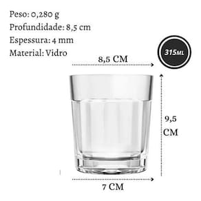 Kit C/12 Copo Americano Double Old Fashioned 315ml Negroni Cor: Transparente JOGO 12 COPOS AMERICANO 315ml NEGRONI WHISKEY Ideais para o preparo de drinks como Negroni, caipirinha ou seu coquetel favorito. Muito resistente, de alto brilho e com o design exclusivo do copo americano, em uma ótima opção para presentear. Em vidro cristalino, podem ser levados à geladeira e lava-louças. Copo ideal para whisky, drink, doses e muito mais. Super sofisticado, deixando sua mesa elegante para servir seus clientes ou convidados. Com um design elegante, é ideal para servir as bebidas e drinks de maneira apropriada, deixando-as mais atrativas. Produto resistente, elegante, durável e econômico. Indispensável para sua cozinha, residência, estabelecimento, comércio, restaurante, lanchonete, buffet, bistrô, padaria, etc. CARACTERISTICAS: - Diâmetro da boca: 8,5 cm - Diâmetro da base: 7 cm - Altura: 9,5 cm - Profundidade: 8,5 cm - Capacidade: 315 ml - Espessura: 4 mm - Material: Vidro - Marca: Nadir Sobre nós. VR Store é uma loja que trabalha com o ramo de decoração e utilidades domésticas que surgiu com o intuito de levar estilo e sofisticação a todas as casas do Brasil com um preço acessível. - Emitimos . - : - Em condições normais de uso, este produto tem de 90 dias contra defeitos de material e fabricação, mediante apresentação da de compra. Má conservação, manuseio inadequado, quedas ou quaisquer outras produzidas pelo uso incorreto, a oferecida perde a validade. PERGUNTAS FREQUENTES: O produto é novo Sim, todos nossos produtos são novos e despachados em embalagem . Acompanha Sim, todos os nossos produtos são enviados com . AVISOS: - Confira se o endereço no seu cadastro está CORRETO e COMPLETO, para que o produto não volte e tenha que pagar outro . - Pagamentos APROVADOS Será enviado em até 24Hs úteis de 2a à 6a . Produtos comprados na sexta após as 14:20 serão enviados na segunda feira , Produtos comprados no Sábado e no Domingo, serão enviados na segunda feira - Pagamento por boleto pode demorar em torno de 1 a 3 para ser confirmado, estes dias devem ser somados ao prazo informado no ato da compra.