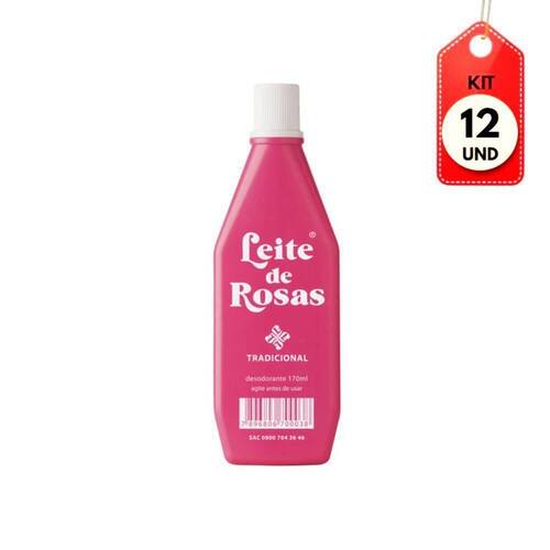 Kit C/12 Leite De Rosas Desodorante 170ml DESCRIÇÃO: Desodorante Leite de Rosas é um produto que se transformou em categoria e que permeia os laços de afetividade de todas as famílias brasileiras. Leite de Rosas é o conjunto de qualidade e fragrância que, há 80 anos, vai bem com todo mundo.AÇÃO/ATIVOS: Conhecido de todos os brasileiros, o Leite de Rosas conta com uma fórmula com inúmeras possibilidades de utilização, que não causa irritações na pele. Com uma fragrância delicada pode ser com outros perfumes, além de hidratar e proteger seu corpo.MODO DE USAR: Aplique sobre a pele, com algodão ou com as mãos. Não é necessário enxague.ESTE ANÚNCIO CONTÉM: 12 Leite De Rosas Desodorante 170mlKit C/12 Leite de Rosas Desodorante 170ml