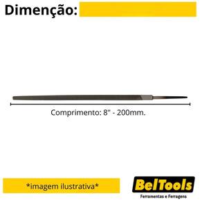 Descrição: Possui picado duplo e corte grosso que proporciona maior desbaste. Indicação: Indicada para desbastar metais com superfícies planas, ranhuras, cantos e rasgos de chaveta. Dureza: 58-62 HRC. Comprimento: 8" - 200mm. Cabo: Sem cabo. Perfil: Quadrada. Tipo de picado: Picado duplo - BASTARDA