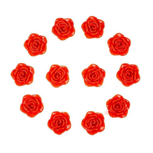 Kit C/12 Miçangas em Resina Flor Rosa Vermelha 2 cm Kit C/12 Miçangas em Resina Flor Rosa Vermelha 2 cm