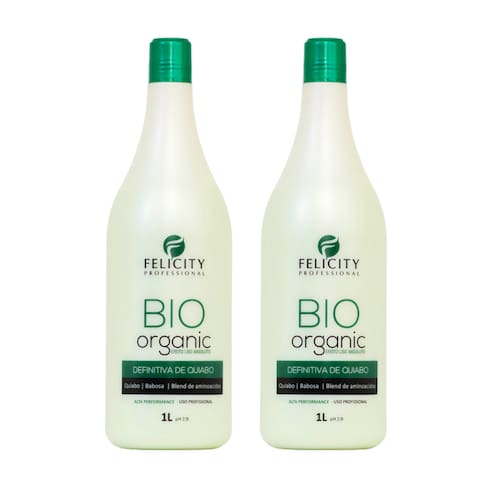 A Escova Progressiva Definitiva de quiabo Bio Organic Felicity Professional foi desenvolvida especialmente para atender a todos os tipos de cabelos. Este tratamento inovador não apenas promove um alisamento eficaz, mas também hidrata e nutre os fios, proporcionando um controle de volume impressionante e eliminando o frizz. O resultado é um efeito liso e disciplinado, combinado com proteção térmica e pontas mais hidratadas, garantindo que a fibra capilar se mantenha totalmente reparada.