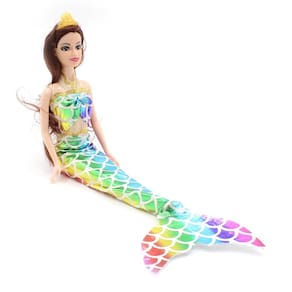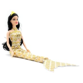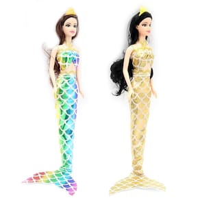 Kit Com Boneca Fashion Doll Sereia Colorida e Dourada.