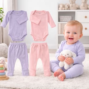 Dê um toque de alegria ao guarda-roupa do seu bebê com estes 2 conjuntos de bodies de manga longa e mijão. Nossos bodies foram pensados para os dias mais especiais, feitos com a suavidade do 80% algodão e 20% poliéster. Com cores adoráveis e divertidas, eles trazem um toque de fofura e alegria. A praticidade do dia a dia e botões de pressão na parte inferior e a facilidade na hora de trocar no seu bebe e garantem que o conforto e a diversão estejam sempre presentes.
