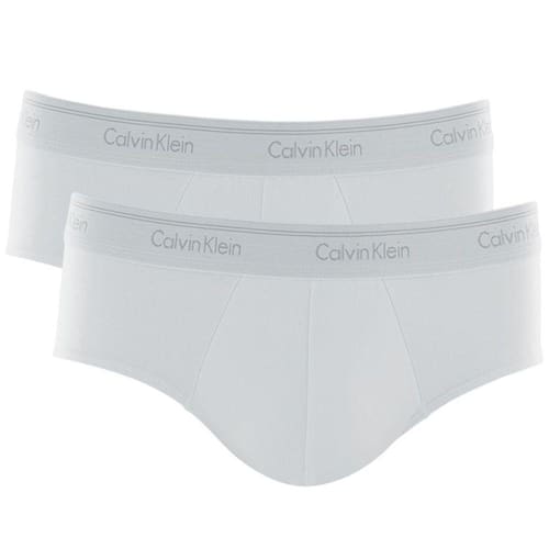 Kit composto por duas cuecas Calvin Klein modelo Slip (Brief) fabricadas em Cotton com elástico aparente personalizado de 35 milímetros.