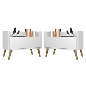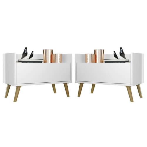 Kit c/ 2 Mesas de Cabeceira 60 cm c/ Pés Retrô Multimóveis Branca/Natural - Branco