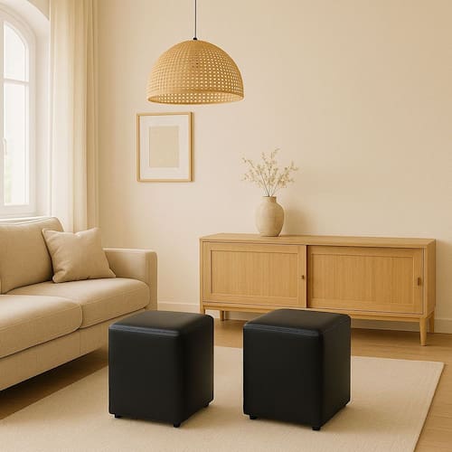 Par de Puffs Parisi Preto 35x35x42cm Ideal Para Sala e Quarto - Bela Manu Decor O Kit com 2 Puffs Parisi da Bela Manu Decor é a solução perfeita para quem busca elegância, funcionalidade e resistência em dobro. Ideal para compor salas de estar, quartos, closets, escritórios e ambientes comerciais, esse conjunto traz versatilidade e beleza ao seu espaço, valorizando cada detalhe da decoração. Cada puff é produzido com estrutura em madeira de eucalipto de reflorestamento, garantindo responsabilidade ambiental e longa durabilidade. O revestimento em couro ecológico preto de alta qualidade proporciona um acabamento sofisticado e fácil de limpar, enquanto o estofamento com espuma D-26 oferece firmeza e conforto ao sentar. Compactos e práticos, medem 35cm de largura x 35cm de profundidade x 42cm de altura, sendo ideais para ambientes pequenos ou como apoio extra. Os pés plásticos de 2cm garantem estabilidade e evitam danos ao piso. Principais Características de cada puff: • Madeira de Eucalipto (Reflorestamento) • Revestimento em couro ecológico preto • Espuma D-26 – conforto e durabilidade • Pés plásticos de 2cm com ótimo acabamento • Suporta até 120kg por unidade Este kit 2 puffs estofados une design moderno, praticidade e resistência, sendo uma excelente escolha para quem deseja decorar com estilo sem abrir mão da funcionalidade. Produto de fabricação própria – Bela Manu Decor, referência em móveis estofados de qualidade. Marca: Não Informado