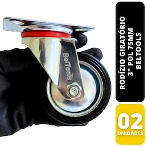 KIT C/2 Rodízio Giratório de Borracha 3" Pol 75mm Beltools