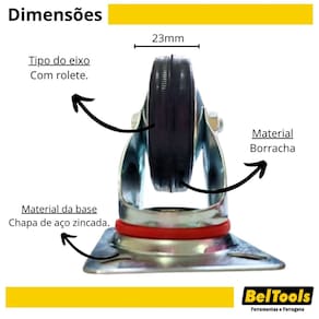 Rodízio Giratório de Borracha 3 Polegadas 75mm Beltools