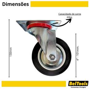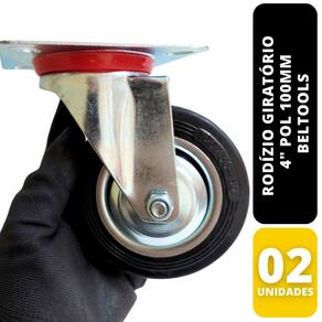 Rodízio Giratório de Borracha 4 Polegadas 100mm Beltools
