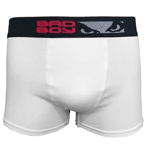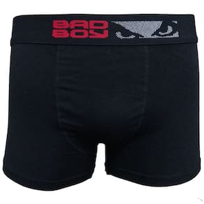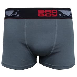 Kit contendo 3 cuecas Bad Boy modelo Boxer fabricada em Cotton 95% Algodão e elástico aparente personalizado de 40 milímetros. Modelagem jovem com lateral de aproximadamente 28 centímetros.