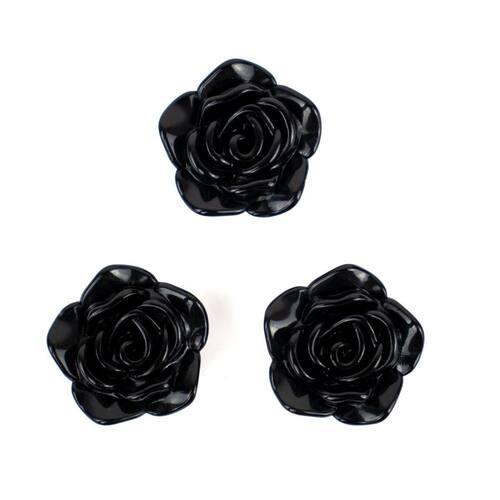 Kit C/3 Miçangas em Resina Flor Rosa Negra 2 cm