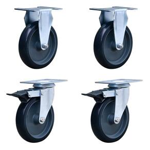 "Kit com 4 Rodas para Cargas Leves - Resistente à Corrosão, Maciez e Conforto, com Trava de FreioEste kit contém 4 rodas de alta qualidade, sendo 2 rodas fixas de PVC e 2 rodas giratórias com trava de freio. São ideais para uso em móveis e acessórios de utilidades comerciais, industriais e centros logísticos, proporcionando resistência à corrosão, boa mobilidade, baixo ruído, maciez e conforto, além de não marcar o piso.Características:Rodízios Fixos de PVC:Composição da roda: PVC preto, com furo passante de 5/16"".Dureza da roda: 65 Shore D (-20°C a 70°C).Garfo em aço com 2,65mm de espessura, acabamento zincado branco e dupla pista de esfera.Diâmetro da roda: 4 polegadas.Largura da banda: 1 1/4 polegadas.Capacidade de carga: 70kg por rodizio.Cor: Preto.Altura total: 108mm. Rodízios Giratórios com Trava e Freio:Composição da roda: Banda em borracha termoplástica (PVC cinza), núcleo em polipropileno, furo passante (cinza).Dureza da roda: 75 Shore A (-10°C a 50°C).Garfo em aço com 2,65mm de espessura, acabamento zincado branco e dupla pista de esfera.Diâmetro da roda: 4 polegadas.Espessura: 3/4 polegadas.Peso total suportado: 65kg por rodizio.Cor: Preto.Altura total: 4 polegadas.Capacidade de carga: Até 80kg por rodizio.Garantia 12 meses Conteúdo da Embalagem:2 Unidades de Roda Fixa Ref.: COLSON-FLP.412.BP.FP (capacidade de 70kg por rodizio) 2 Unidades de Roda Giratória com Trava de Freio Ref.: COLSON-GLPF.412.BP.FP (capacidade de até 80kg por rodizio)Com este kit de rodas, você terá 2 rodas fixas de PVC e 2 rodas giratórias com trava de freio, proporcionando versatilidade, mobilidade e segurança para suas necessidades. As rodas são projetadas para cargas leves, oferecem maciez e conforto durante o uso, garantindo a qualidade e durabilidade do produto."