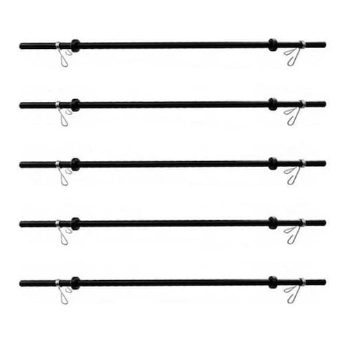 Kit c/5 barra para body pump musculação academia c/presilhas Peso máximo recomendado- 60 kg A barra body pump infinity com 1,20 m com presilhas é ideal para os treinos em casa e na academia, trabalha bíceps, peito, glúteos, ombros, coxas, costas, agachamento produto de excelente qualidade e acabamento. Com prático sistema de travas por presilhas permite trocas de anilhas mais rápidas A barra para aulas de body pump infinity, possui comprimento de 120cm e acompanha 2 presilhas para prender as anilhas. Características: Cor: preto Fixação: presilhas Tamanho: 120 cm Tudo de 1 polegada Diâmetro: 25 mm Espessura 1,2 mm Itens inclusos: 05 barra de pump - 10 presilhas para anilhas Garantia: 3 meses contra defeito de fábrica