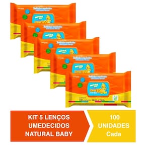 - Conteúdo da Embalagem: Kit 5 Lenços Umedecidos Natural Baby 100un cada - EVG