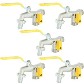 Kit com 05 Torneiras Tradestar para Tanque e Máquina - Duas Saídas - 1/2" x 3/4"
