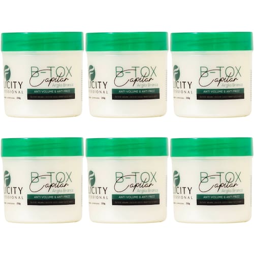 Transforme seus cabelos e sinta a diferença com o Kit C/6 B-Tox Capilar Argila Branca Orgânico Felicity 250gr. Experimente e tenha fios renovados e saudáveis!