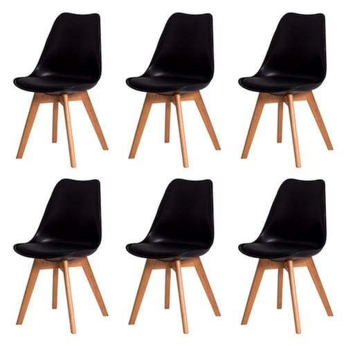 Kit C/6 Cadeiras Leda ? Charles Eames, Saarinen Wood Preta - Preto