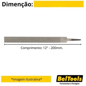 Descrição: Possui um dos lados chato e outro arredondado possibilitando utilização em superfícies côncavas ou planas. Indicação: Indicada para desbaste de madeira em superfícies planas ou côncavas. Comprimento: 12" - 200mm. Cabo: Sem cabo. Perfil: Chata